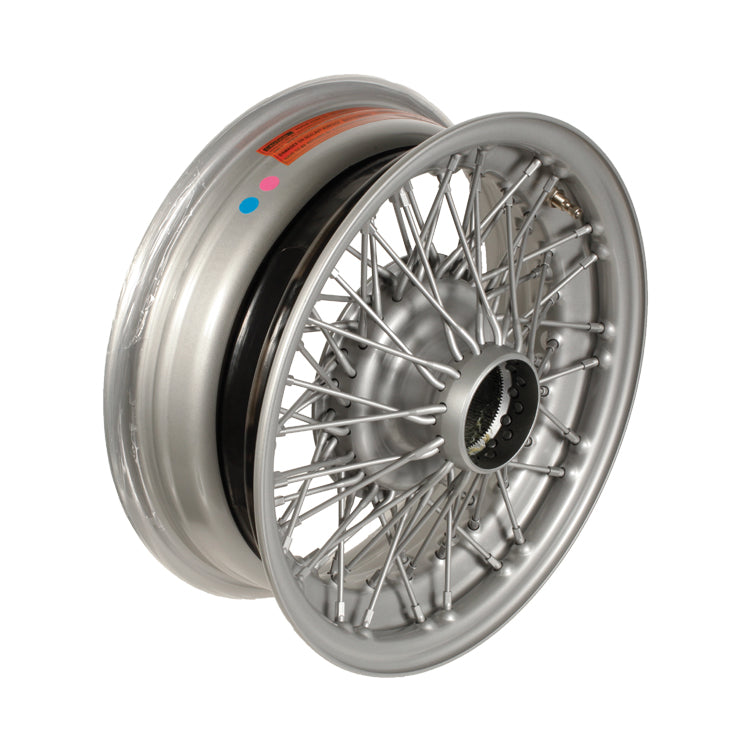 Silver Painted Wire Wheel, 72 Spoke - 16" X 6" Standard Laced Tubeless Wheel. 52 Mm Curly Hub. Supplied With Spokes And Nipples - Silver Paint Finish